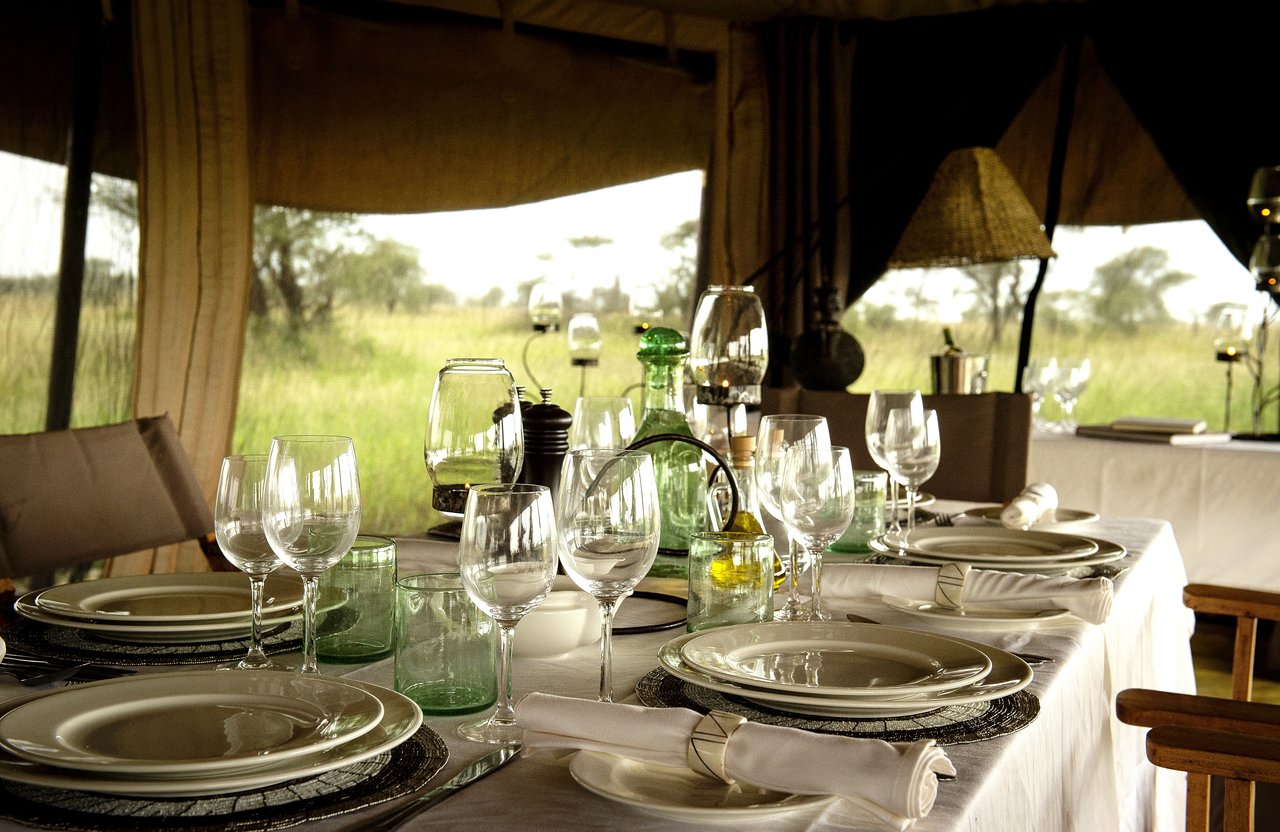 Serengeti Tanzania Bush Camp (Serengeti National Park, Seronera) – visitors who make their way into this camp have the option of ordering a bush lunch or dinner. Visitors can enjoy a bistro-style three-course meal with a netted fly sheet, waited service and a bush bar (drinks) afterwards.